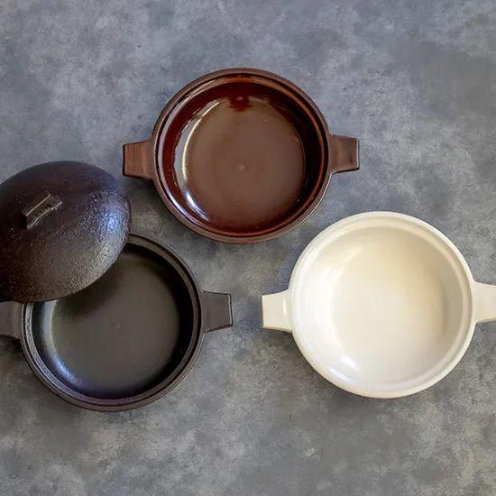 朝食の卵料理・献立の一品・おつまみやお弁当のおかず作りなど、さまざまな活用ができる便利な大きさの土鍋です。調理したらそのまま器として食卓へ。ふた付きの器としても重宝します。